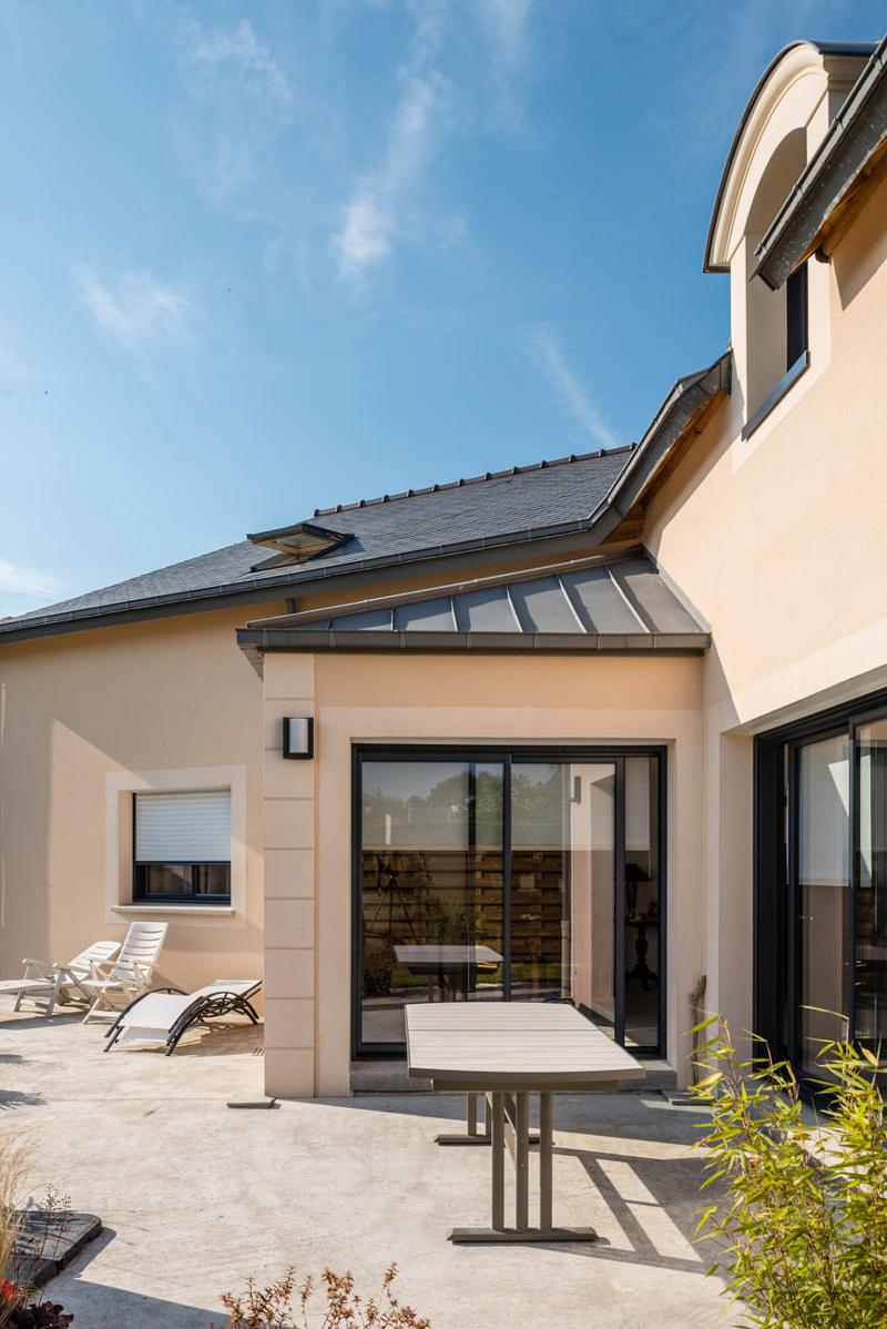 Maison neuve en zinc et quartz avec ardoises naturelles et étanchéité