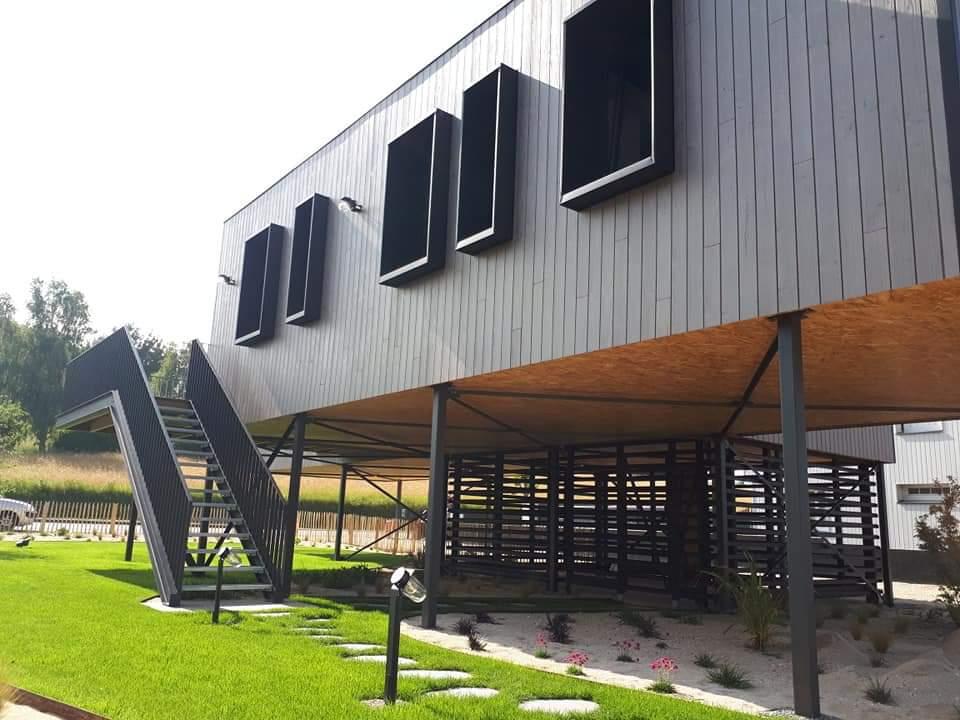 PI Architecture - Bardage bois et casquette en joint debout aluminium noir - Saint
