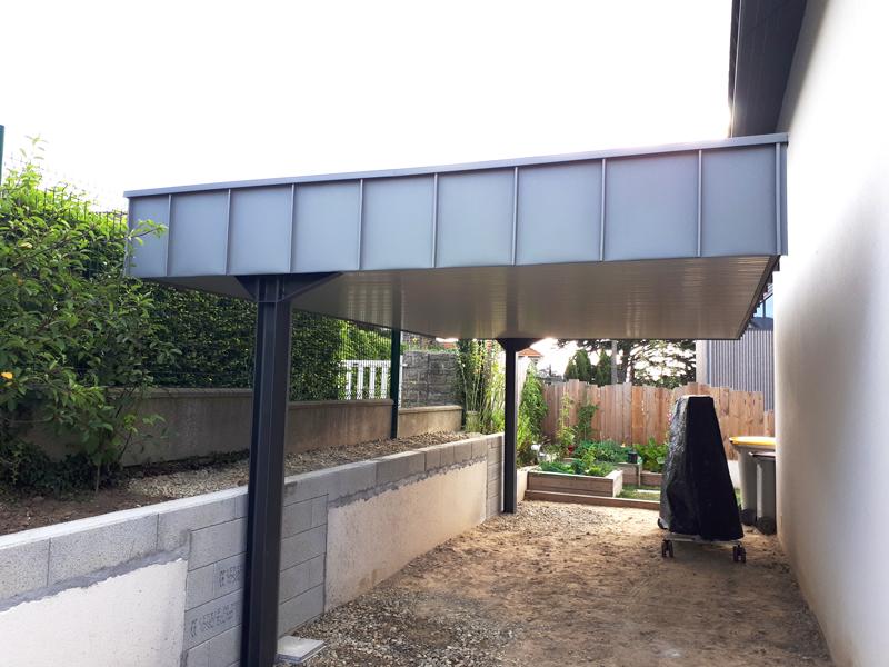 Carport avec étanchéité et bardage en zinc et quartz à Rotheneuf Saint Malo (35)